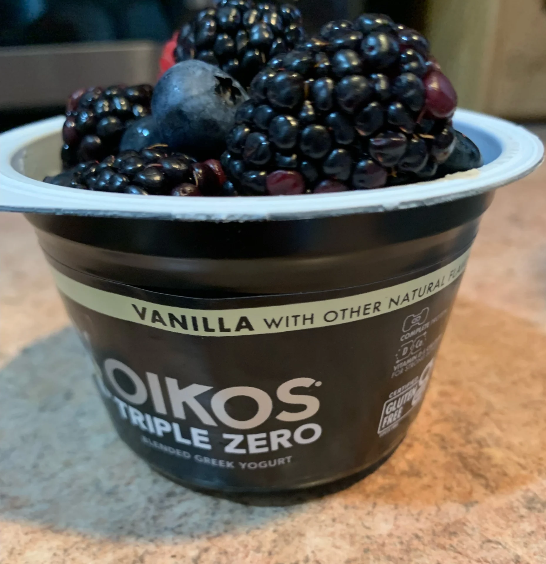 - Breakfast- 1 non-fat Greek yogurt, mix in ½ cup Fiber One Bran Cereal & ½ cup berries and ½ grapefruit